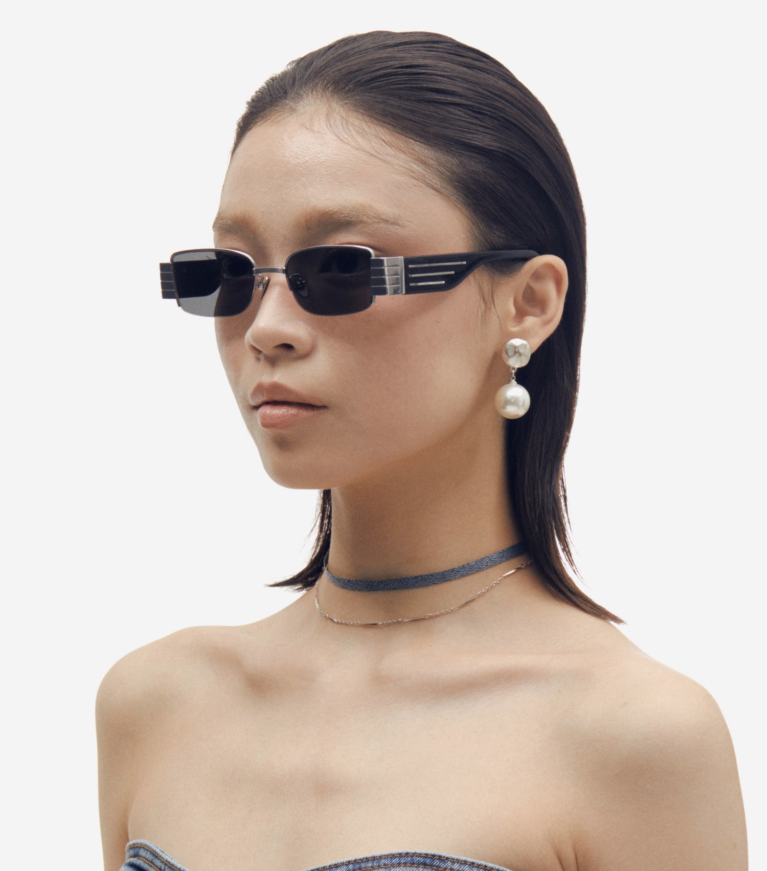 Sunglasses collection that blend pure titanium with interspersed acetate, creating a dynamic design with both movement and structure. Each piece showcases meticulous attention to detail, making these sunglasses unforgettable for those who wear them. The fusion of materials not only enhances their durability but also adds a unique, modern aesthetic.